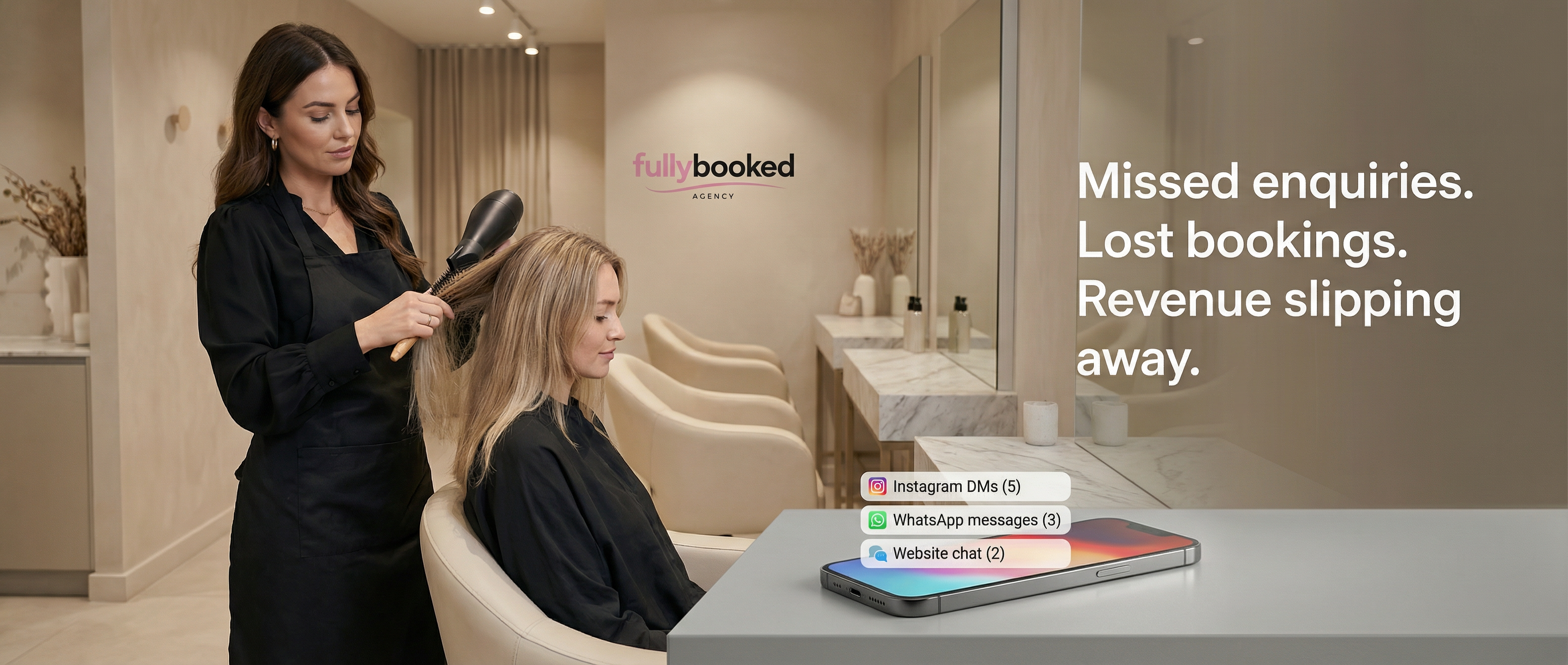 Every missed message is a missed booking. Our team responds instantly so your clients never slip away. Book a call now and see how quickly we can turn enquiries into appointments.